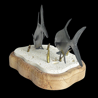 Note: We can use any variety of wood you prefer for the bases. Also the angle of the large 30" Tailing Permit can be changed to fit an overall height requirement you might have. I'm also interested in making a couple of new permit sculptures so please call if you'd like to have a size not shown.