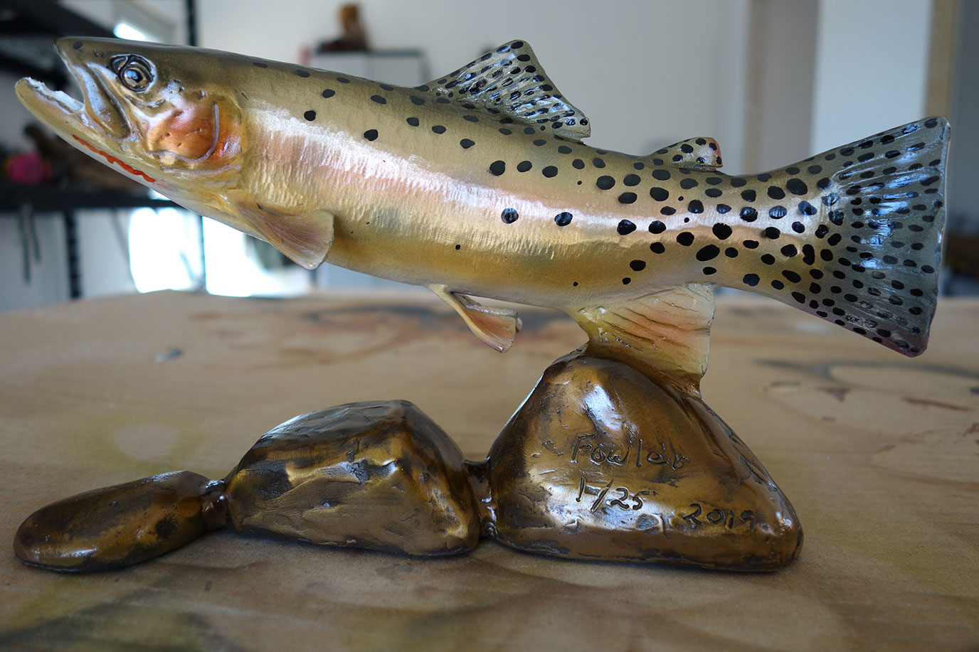 Please call if you see a trout sculpture you like but don't see the size you want. Over the years we have made many new sculptures to depict a special fish for someone's office or home.